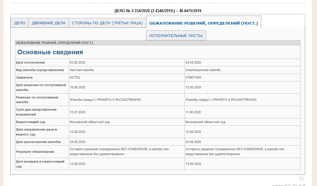 ООО УК «М-4» подало апелляционную жалобу. Апелляционная жалоба на решение Домодедовского городского суда от 17.01.2020 года была рассмотрена Московским областным судом 24.08.2020 года – решение суда оставлено без изменения.