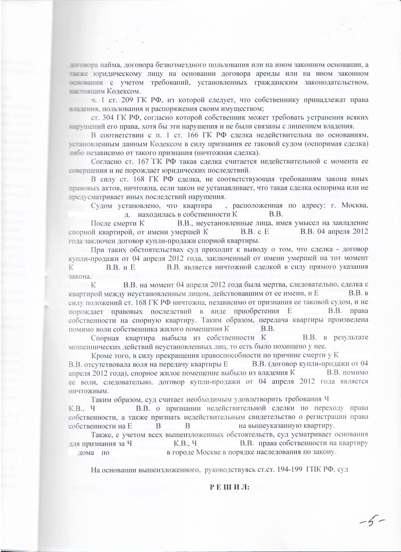 Суд установил, что квартира находилась в собственности К.В.В. Сделка заключённая после её смерти ничтожна. Установлено, что истцы Ч.В.В. и Ч.К.В. пропустили срок для принятия наследства по уважительной причине.